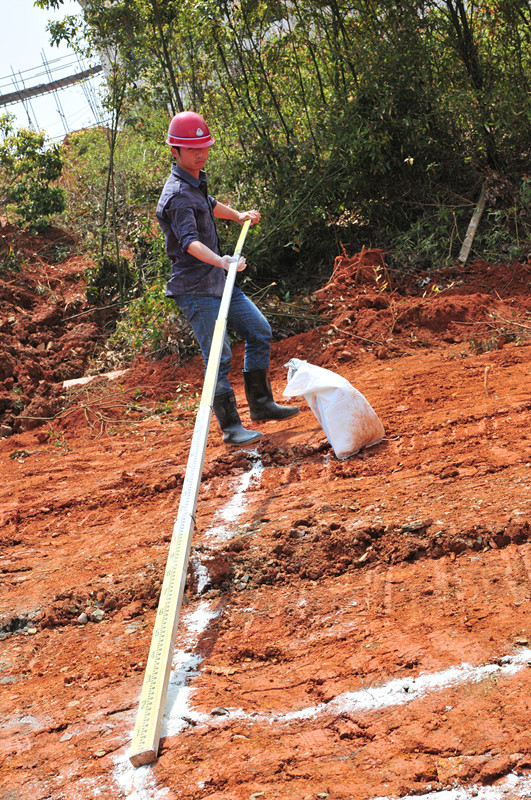 胡明同志在共青項目主動學習測量放線業(yè)務知識